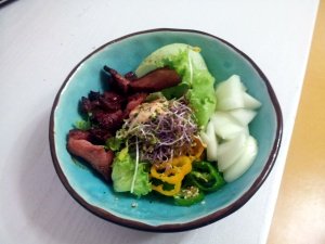 오븐느님으로 구운 오리고기에 양파, 양상추, 파프리카, 새싹, 오이고추에 1000아일랜드 드레싱 약간ㅋ