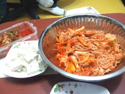 이 친구가 매운거 싫어해서 김치는 물에 씼고, 피자치즈는 저 가운데 들어있음ㅋ