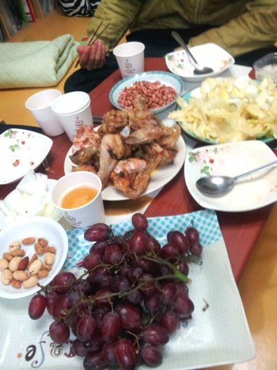 오븐느님이 구워주신 치킨과 집근처 마트에서 산 칠레포도ㅋ