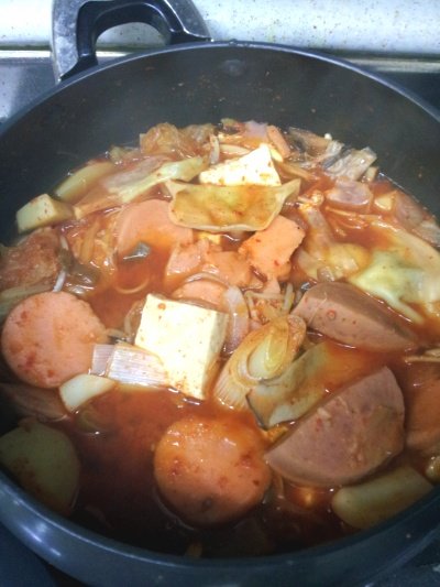 고춧가루, 청량고추, 햄, 진주햄, 소시지,만두, 두부, 파, 다진마늘, 김치, 올리고당, 간장 등등ㅋㅋ