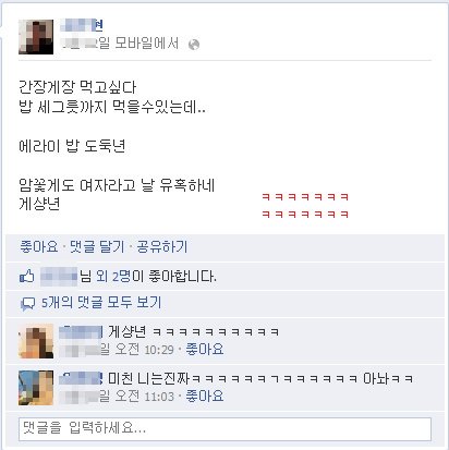 이번엔 자극적인 문구로 또 페북에 글이 올라옴