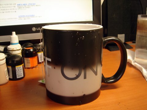 예전에 드라마에서 OFF로 있다가 뜨거운 물 부우면 ON으로 변하는 머그컵을 보고