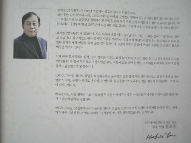 글고 연출을 맡으셨던 윤호진연출가님께서는 1995년 뮤지컬 <명성황후>초연시때부터 연출을