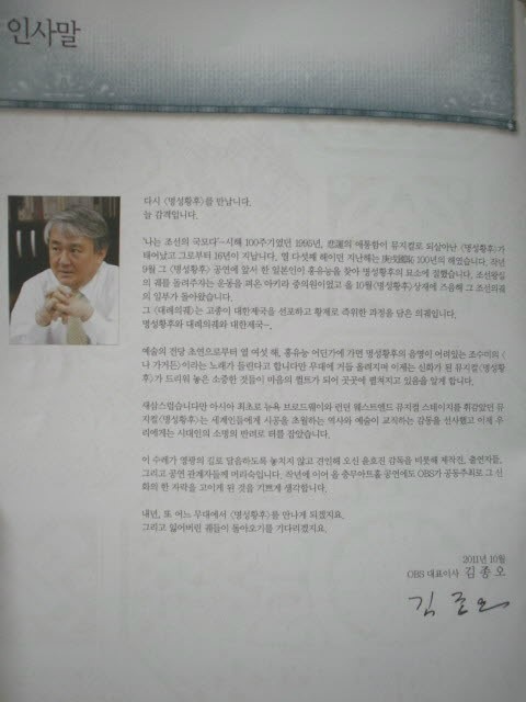 그 안정감 있고 스펙터클한 관록의 무대를 통해 2011년을 살아가고있는 한국민들에게 앞으로도 계속 무한한 감동을 안겨주시길 기원합니다^^*