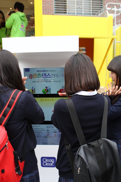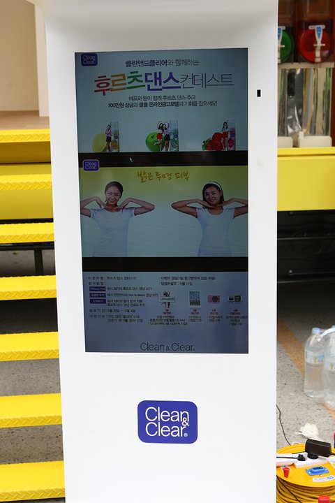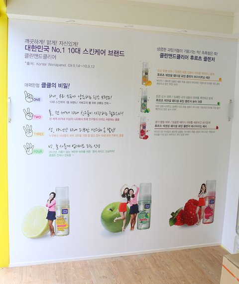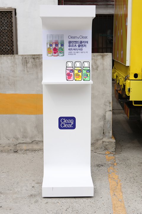 버스 옆에는 클린앤클리어의 후르츠클렌저를 소개하는 작은 간판도 있어요!