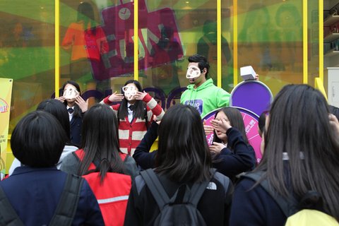 버스 밖에서는 퀴즈를 내주시고 맞추면 후르츠클렌저 정품을 주는