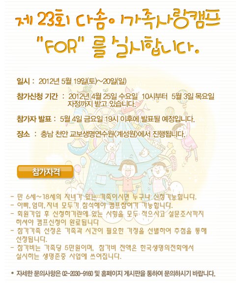 제23회 다솜이가족사랑캠프 "FOR"에 여러분을 초대합니다~