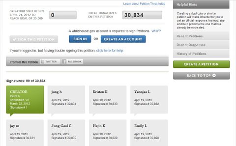 다름이 아니라 제가 백안관 인터넷 홈페이지에서 서명운동하는것을 찾았는데요!