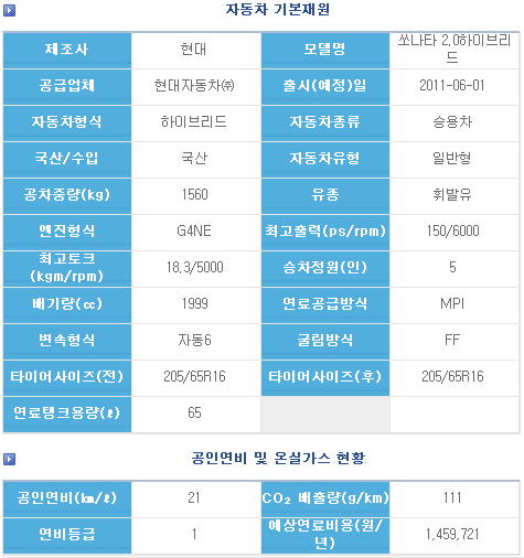 차종별 스펙과 연비정보를 자세히 알 수 있는데요.