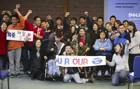 (피츠버그 지역예선을 통과한 희준과 환호하는 친구들. 저들은 사실 모두 밀알의 자원봉사자들)