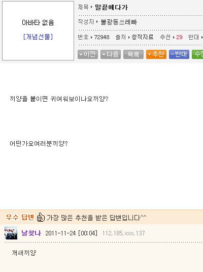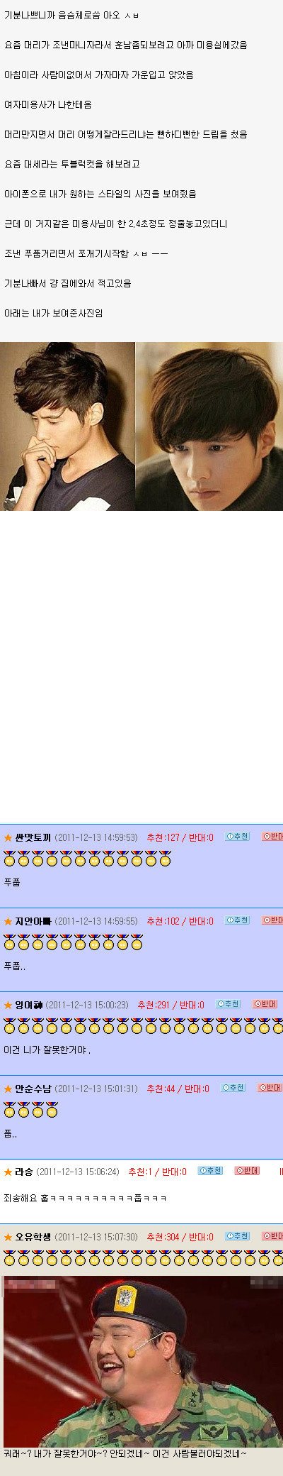 시험기간인데 난 왜 이걸보고 웃고있는거야우우루우어어어어어어엉억억ㅇ겅ㄱ억 -------------- 우와..베플됐네요!ㅠ_ㅠ 셤기간인거 말해서 기분 안좋게 해서 죄송해요ㅠㅠㅠㅠㅠㅠ헝..소심하게 집짓기☞☜...제 홈피에노래 잘부르는 멋진 남자있음 보러오셈ㅎㅎ그럼 모두 셤 잘봅시당!