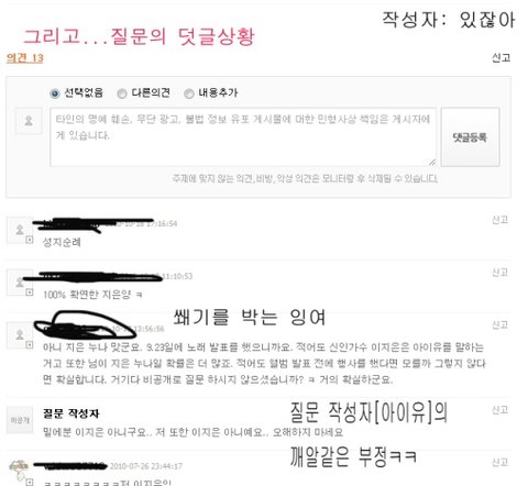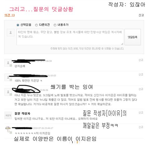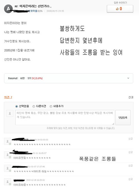 뒤늦게 [너 이지은이냐?] 라고 하신분말고 다른분께서 아니라고 반박한 글이 있었는데 비난받음