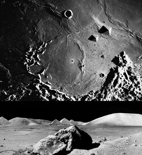 달에서 공개된 피라미드 모양의 건축물들입니다. 지형이 아니냐는 의견이 있지만, 나사측에서는 이 사실을 은폐하려는 정보라서 더욱 의심이 가게 합니다. 아무리 운석과 충돌한다고 해도 저런 형태가 나오기 힘들다고 합니다.