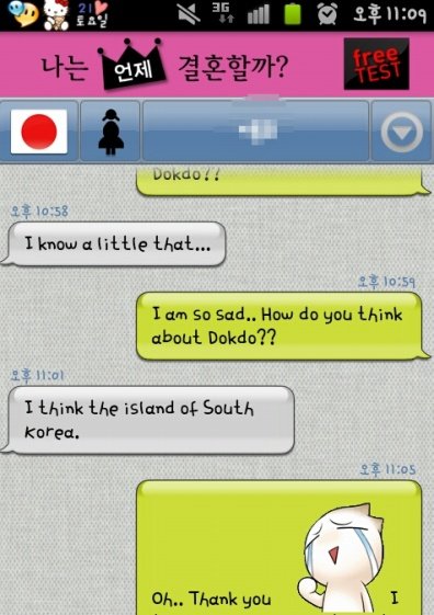 일본인언니 : I think the island of South Korea.(독도는 남한꺼라고 생각한데요!)