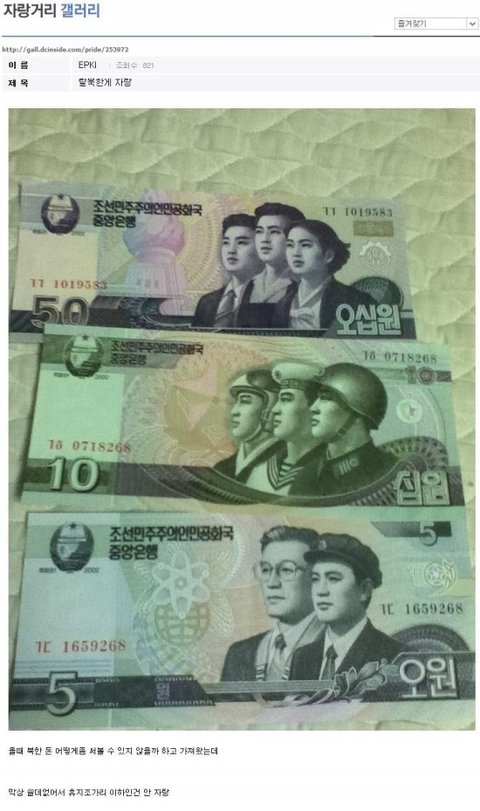 탈북해서 인증사진올림(북한돈)