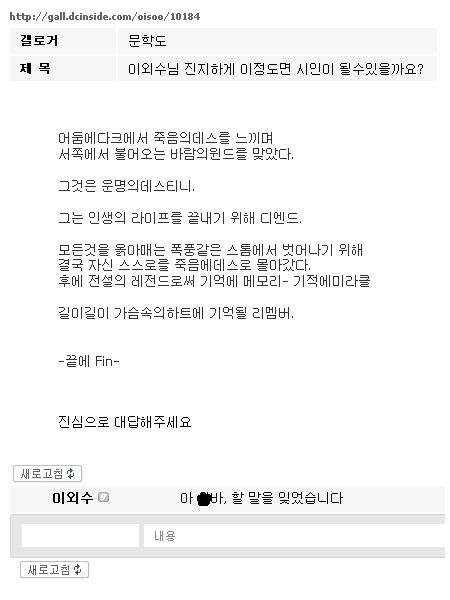 어느 한가로운날, 디씨에 한 글이 올라옴