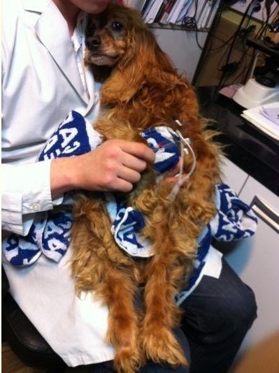 수의사 선생님께서 포카리의 상태를 봐주고 계실 때 입니다