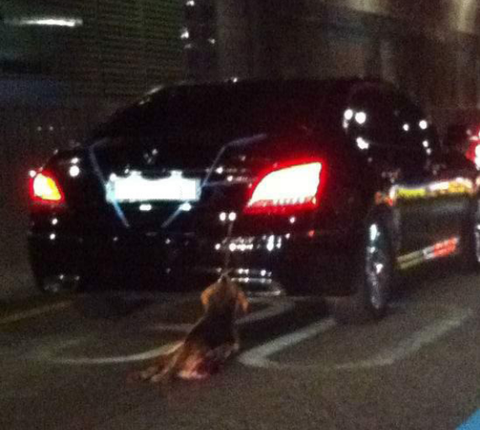 악마에쿠스 차주가 개를 뒤에 매달아 고속도로를 질주하는 동영상이