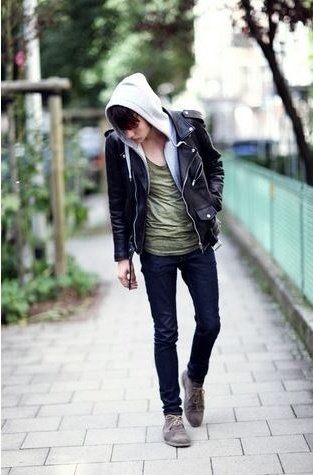 이준씨는 그레이빛의 레더자켓과 후드티셔츠를 착장하셔서 캐주얼한느낌을~