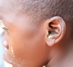말라리아를 심하게 앓을 경우 이렇게 귀 속에 고름이 차기도 하는데,