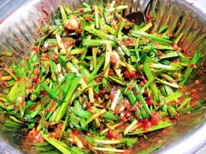 부추를 잠시 절일 때에도, 양념에도 멸치액젓이 쓰이는데,