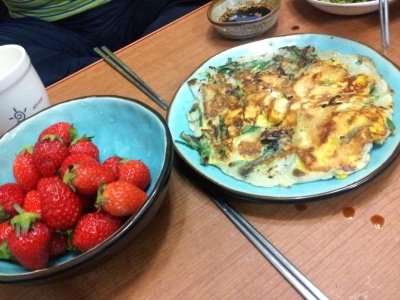 집근처에 장이 열려있어서 딸기 두 바구니 사다주셨음☆