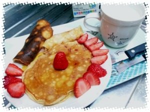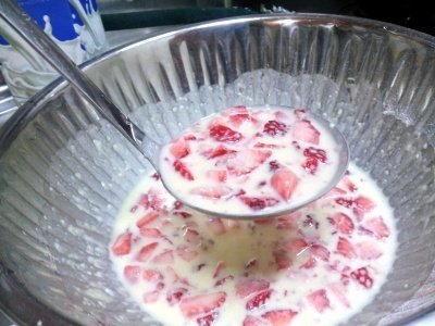 딸기를 잘게 썰어서 핫케잌 반죽에 넣고 ㄱㄱ