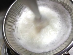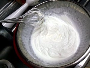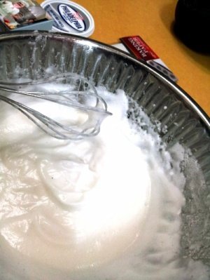 1- 일단 달걀 흰자 5개에 백설탕을 적당히 부어 섞어 [머랭]을 만듦ㅋ