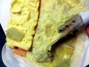 이건 파전 반죽 붓고 그 위에 계란(흰자 노른자 휙휙)을 부은건데,