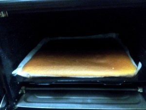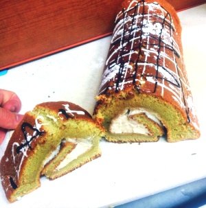 꺼내어 식히고, 만든 모카크림(인스턴트커피 녹인물, 생크림, 크림치즈)을 깔고 말아서