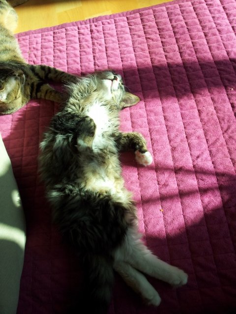 나님..........고양이발바닥이 분홍색인줄만알앗는데....보라색임...우리나비희귀고양이다냥