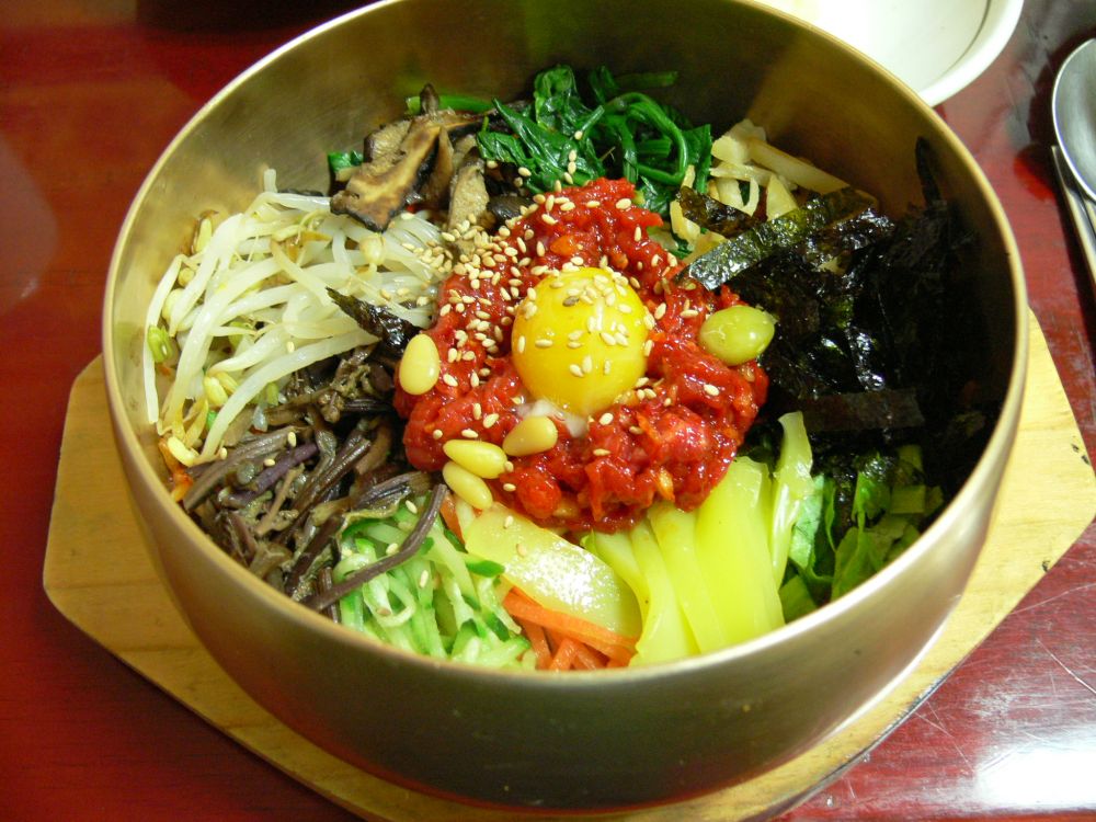 전주에가면 돌그릇에 나오는 일반 비빔밥, 놋그릇에 나오는 육회비빔밥이 있다.