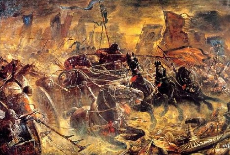 그야말로 중무장한 기병대가 돌격하면서 보병들의 수난사가 시작되는 거임.