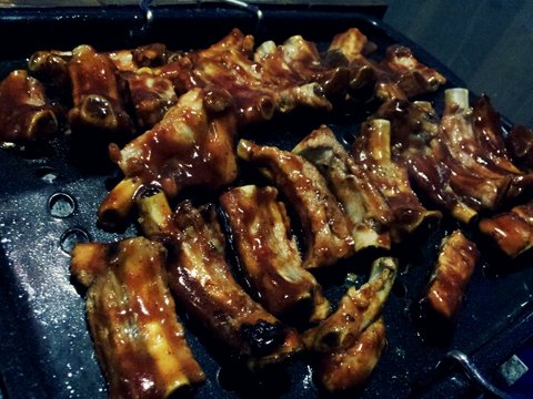 국내산 립을 고르거, 피를 빼거, 삶거, 바베큐소스를 바르거, 굽고, 또 소르를바르거, 굽고해서