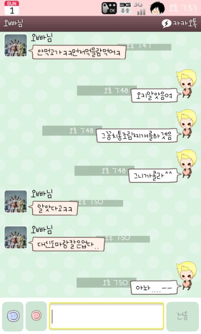 자, 긴 말하지 않고 그냥 카톡 올리겠음.