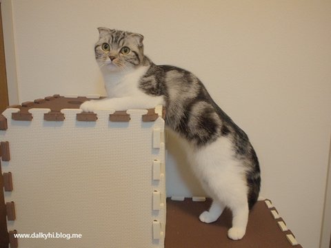 주의: 역시 호기심이 많고 운동량이 많은 편이라 많이 움직일 수 있는 환경. 높은 캣타워등을 만들어주는게 좋음!