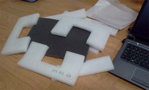 [나의 정품 노트북 스티로폼 보호대는 어디다 버리고, 이런 조각을 넣어서 배송]
