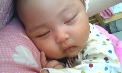 늘 제 팔배개를 해야 잠을 자는 우리 진아 잘때도 이쁜척 손가락포즈~