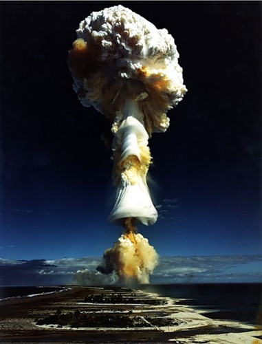 1968년 프랑스 군대가 행한 Fangataufa산호초에서의 핵실험 관측 사진.
