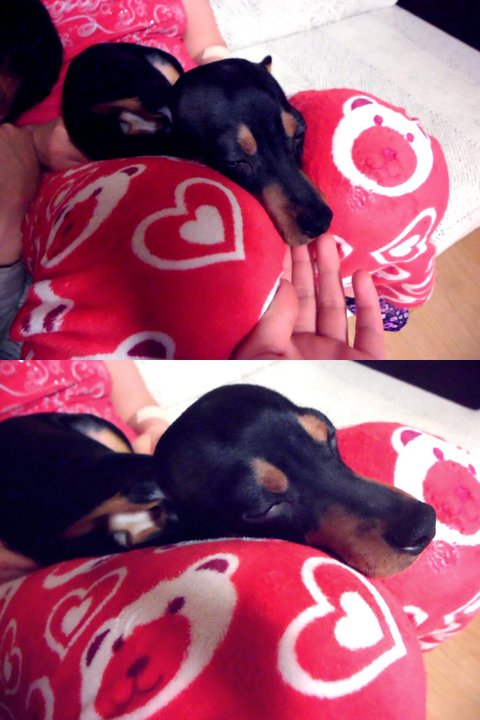 닥스훈트아닙니다........ 뒷다리가 짧아보이지만........ 미니핀입니다......................