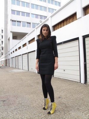 모그의 블랙 오픈 토 레이스업 부티를 매치하였습니다.
