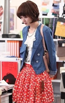 저런 컬러풀 돋는 빨간색 땡땡이~ 치마입어주면