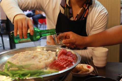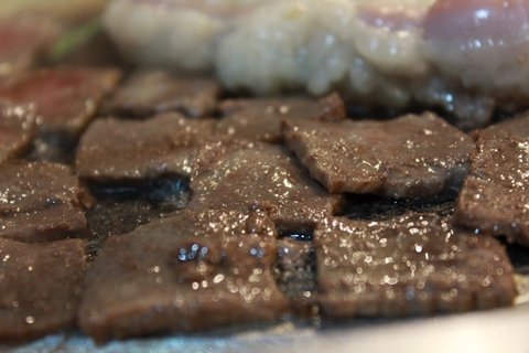 한잔 마시고 또 불판만 뚫어져라 보는 우리