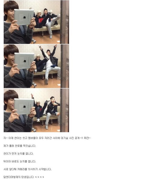 자~ 이제 찬이는 씻고 멤버들이 모두 자러간 사이에 대기실 사진 공개 ~!! 짜쟌~
