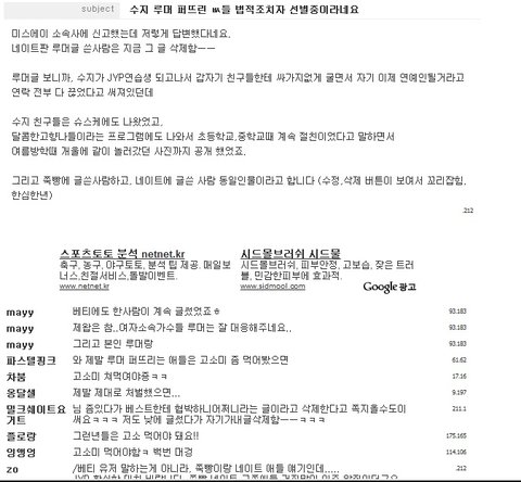 남초는 물론 여초인 베티에서도 여러가지 수지 관련 루머 조작한 정황이 나와서 털림.