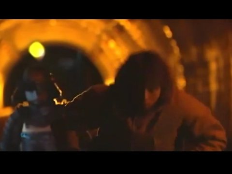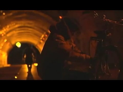 사무라이? 귀신이 바로 뒤에까지왔는데도 모르고 체인을 고쳐 터널을 통과함...