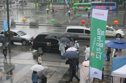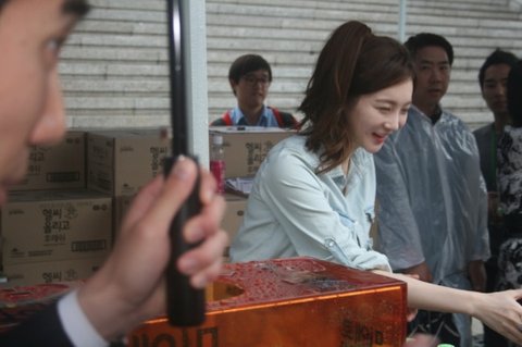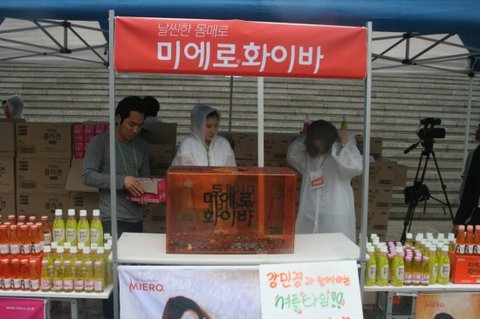 직접 시민들에게 살인미소를 날리며 음료를 나눠주는 민경님 ...