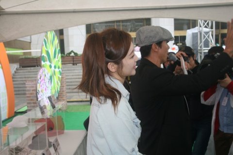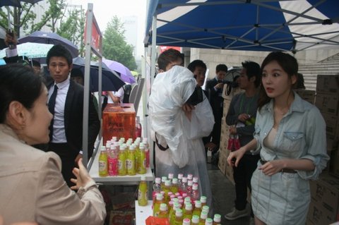 강민경이 직접 기부함 옆에서 음료를 시민들에게 직접 나눠준다고 한다고 해서 기다렸습니다 !!!