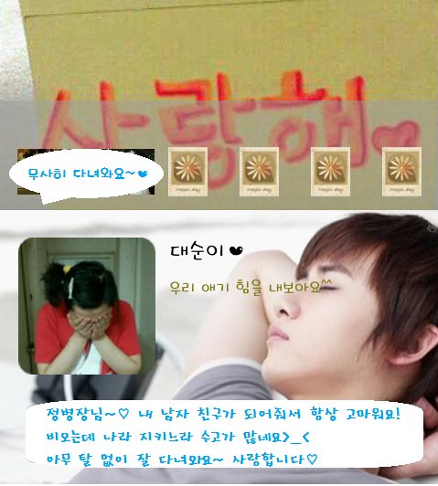 (위에 있는 카카오스토리 배경은 제가 공부하다 심심해서 000 사랑해♡ 라고 포스트잇에 써서 찍어서 보내준거예요. 심심해서 끄적이긴 했으나, 나름 심혈을 기울인 작품입니다. 나름 자랑중ㅋㅋㅋㅋㅋ)
