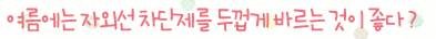 A4. (X)자외선 차단제는 두껍게 바르는 것보다얇게 자주 발라주는 것이 트러블을 최소화하고, 자외선 차단효과도 극대화 할 수 있다는 사실, 이제 다들 아시죠?